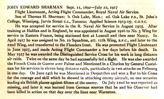 Son of Thomas H. and Frances A. Sharman, of Oak Lake, Manitoba.