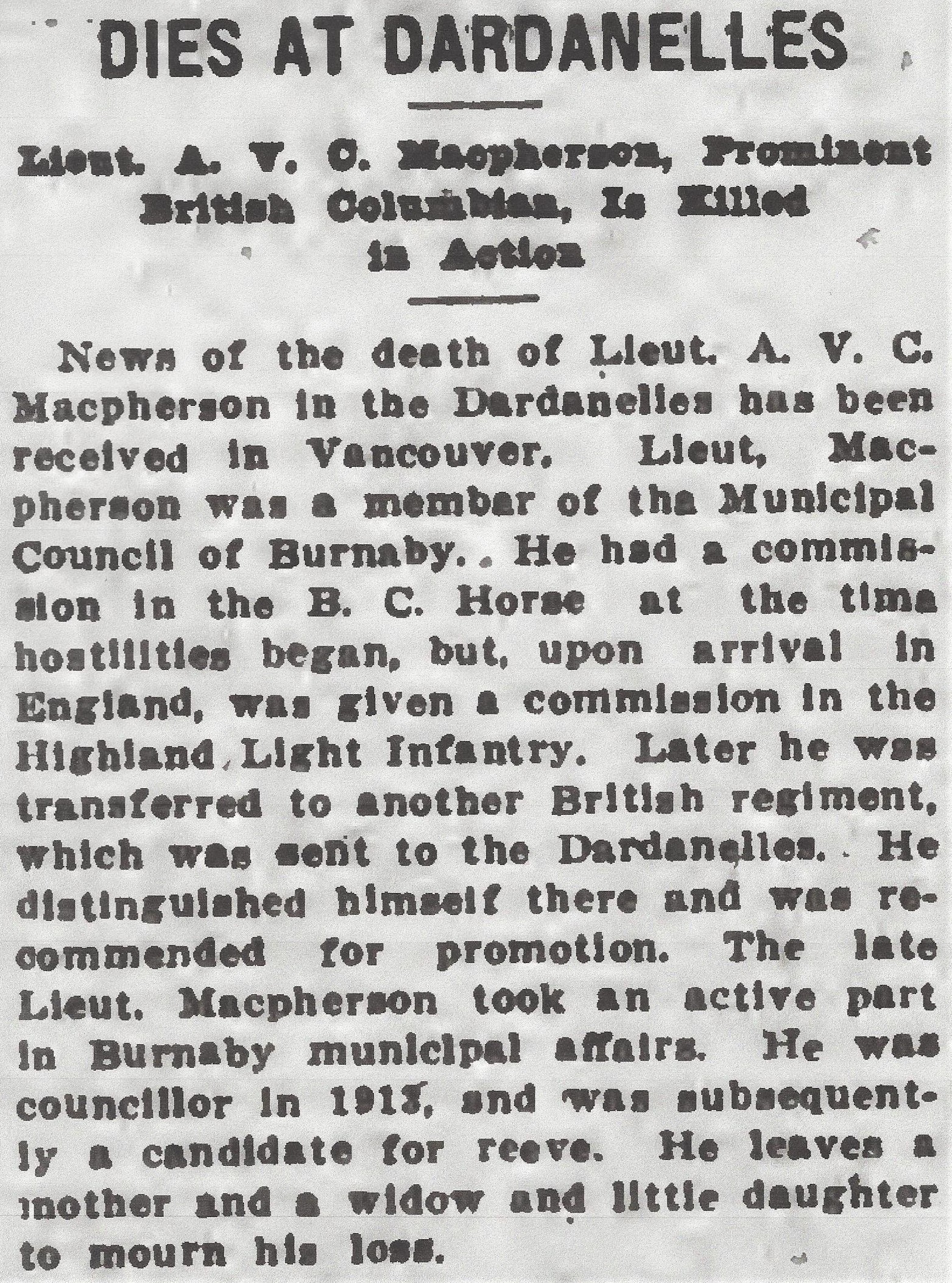 Lieutenant Alexander Vincent Claresholm MacPherson