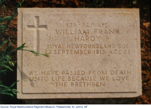 Son of George and Elizabeth Hardy, of 24, Monroe St., St. John's, Newfoundland.