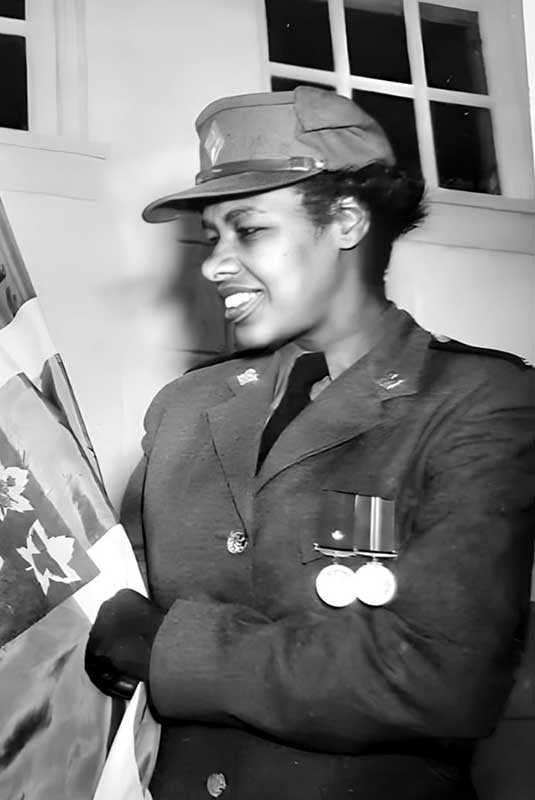 Second Lieutenant Molly Lamb Bobak at work in London, England. 12 July 1945.