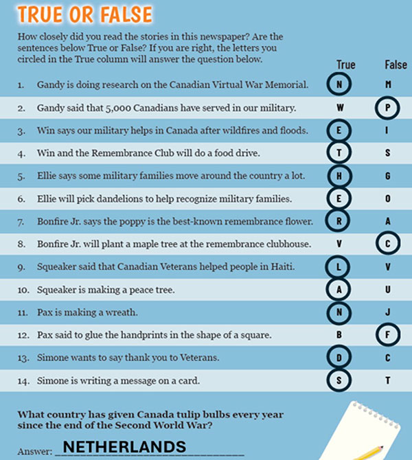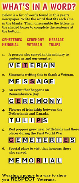 Learning Activities Introduction Expert Groups Poster Glossary Answers to Newspaper Activities Scavenger Hunt Remembrance math Crack the naval code What's in a word True or false