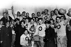 The Toronto Royal Canadian Air Force Hurricanes and the Winnipeg Royal Canadian Air Force Bombers played for the 1942 Grey Cup at Varsity Stadium, in Toronto. In icy field conditions Toronto defeated Winnipeg 8 to 5. In London, England, Canadian servicemen and civilians listened to a radio broadcast of the game.