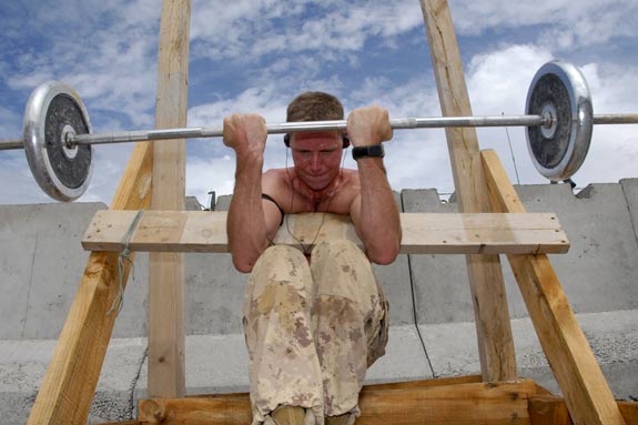 Being a member of the Canadian Forces means you have to keep in top shape. But how to get a good workout when you are in war-torn Afghanistan? Surprisingly, finding a gym is not usually a big problem! The larger army bases have modern weight rooms, but even the smallest bases often find a way of setting up a bench and some weights so the soldiers can still workout.