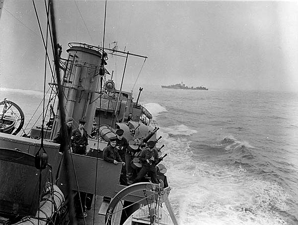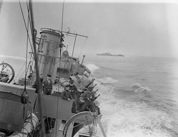 HMCS Assiniboine on the Atlantic Ocean during the Second World War.