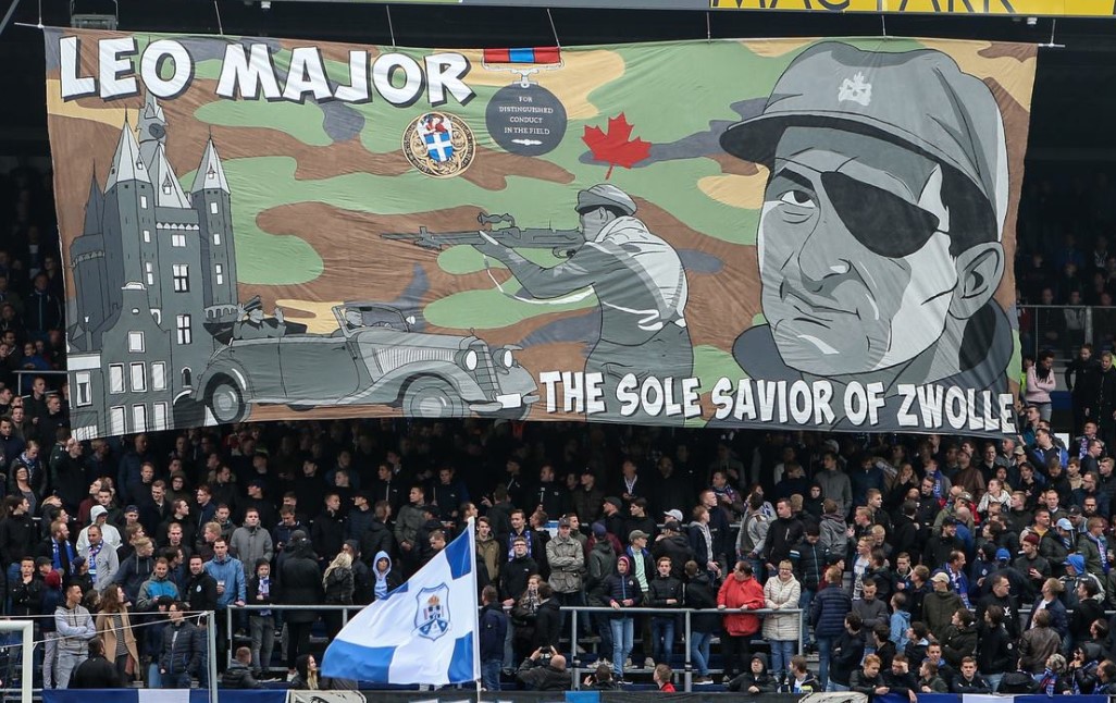 Léo Major banner at a soccer game in Zwolle.