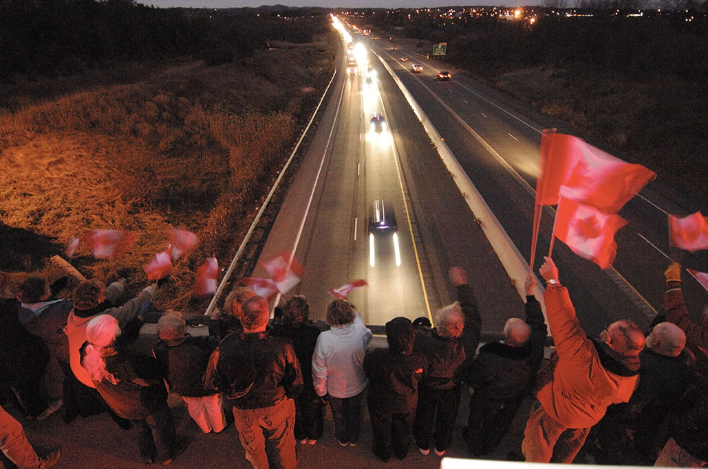 This stretch of Highway 401 in eastern Ontario is where Canadians who have died overseas often travel after being returned to our country. The fallen soldiers arrive at the airbase in Trenton and are then respectfully driven to Toronto before being sent on to their final resting places. More than 40,000 brave Canadian Armed Forces members served in Afghanistan between 2001 and 2014—the largest military mission since the Second World War. Sadly, some 158 of them died during these efforts in far-off Southwest Asia.