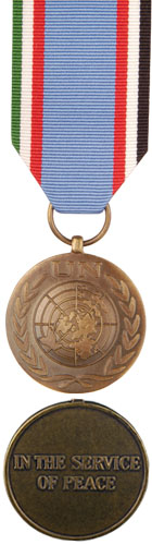 Medals and other decorations that honour Canadians who have served. Filter by: Category - Any -Campaign MedalCommemorativeDepartmental awardsInsigniaMeritorious serviceOrder and decorationsOrders and DecorationsSacrificeService Medal Keyword(s) SearchReset Displaying 97 to 108 of 228 entries UN Forces in Cyprus (UNFICYP) UN India Pakistan Observation Mission (UNIPOM) UN Emergency Force Middle East (UNEFME) UN Disengagement Observation Force (UNDOF) UN Interim Force in Lebanon (UNIFIL) UN Military Observation Group in Iran – Iraq (UNIIMOG) UN Transition Assistance Group (Namibia) (UNTAG) UN Observer Group in Central America (ONUCA) UN Iraq – Kuwait Observer Mission (UNIKOM) UN Angola Verification Mission (UNAVEM) UN Mission for the Referendum In Western Sahara (MINURSO) UN Observation Mission in El Salvador (ONUSAL) Displaying 97 to 108 of 228 entries Pagination First page « First Previous page ‹ Previous … Page 5 Page 6 Page 7 Page 8 Current page 9 Page 10 Page 11 Page 12 Page 13 … Next page Next › Last page Last »