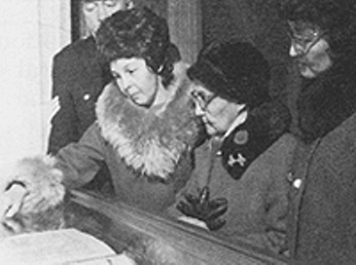 Mrs. Mary Louise McLeod of Neyaashiinigmiing, Chippewas of Nawash Unceded First Nation, Ontario, was the 1972 National Silver (Memorial) Cross Mother. During the national Remembrance Day ceremony in Ottawa on November 11, 1972, she laid a wreath at the base of the National War Memorial on behalf of all mothers who have lost a child in military service to Canada.