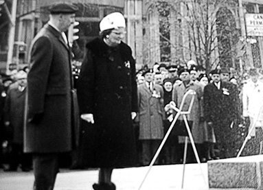 Mrs. Nora Wagner of Teeterville, Ontario, was the 1965 National Memorial (Silver) Cross Mother. During the national Remembrance Day ceremony in Ottawa on November 11, 1965, she laid a wreath at the base of the National War Memorial on behalf of all mothers who have lost a child in military service to Canada.