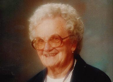 In 1919, they moved to Summerland, where she lived for 74 years, to take over her in-laws’ business–a grocery store. Known for her strong work ethic, in addition to working in the family store, she taught piano lessons and managed and operated the fruit orchard adjoined to their property. In the fall, Mrs. Hunter would harvest the fruit, pack it and deliver it to the train station miles away via a horse-drawn wagon. In July, 1959 she was widowed. Ten years later, she married Frank Hunter. Mrs. Hunter died in 1993.