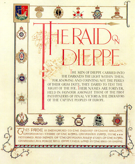 This page is dedicated to the memory of the gallant canadians-three of the Royal Canadian Navy, nine hundred and seven of the Canadian Army and ten of the Royal Canadian Air Force who gave their lives in the raid on Dieppe.