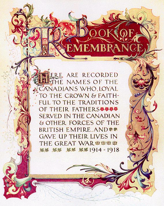 Here are recorded the names of the Canadian who, loyal to the crown & faithful to the traditions of their fathers served in the Canadian & other forces of the British Empire, and gave up their lives in the Great War