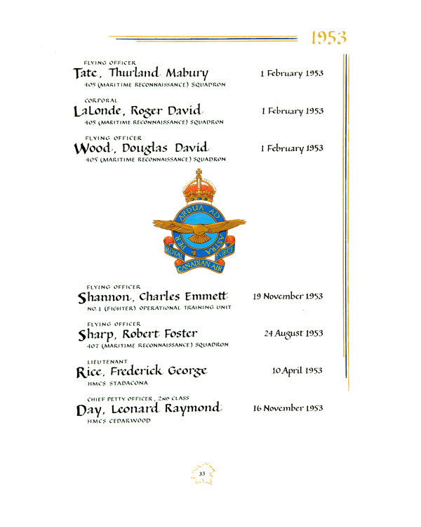 | 80002687 | Wood | Douglas David | February 1, 1953 | Flying Officer | 405 (Maritime Reconnaissance) Squadron |