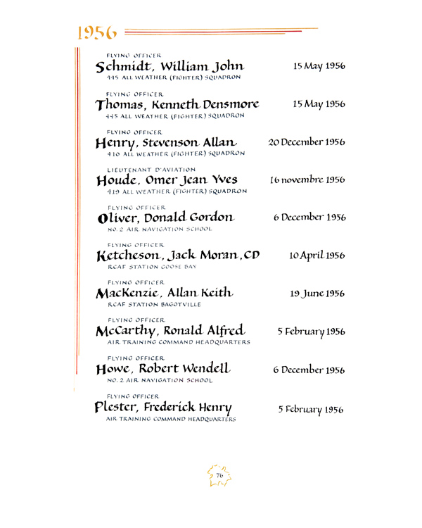 | 80003124 | Schmidt | William John | May 15, 1956 | Flying Officer | 445 All Weather (Fighter) Squadron |