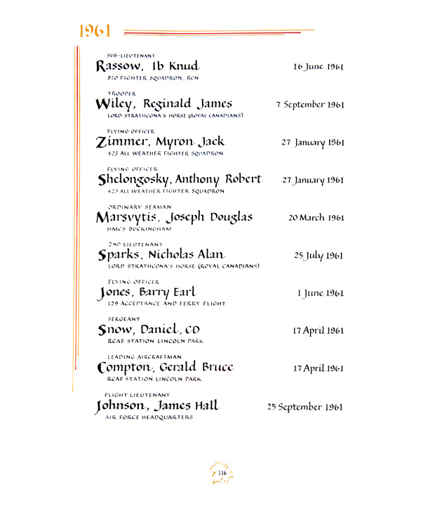 | 80002486 | Rassow | Ib Knud | June 16, 1961 | Sub-Lieutenant | 870 Fighter Squadron, RCN |