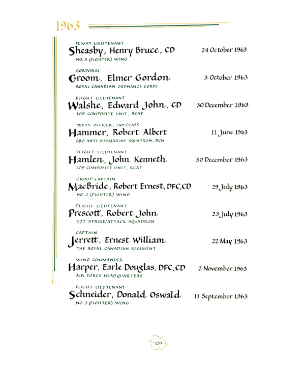 | 4506932 | Hamlen | John Kenneth | December 30, 1963 | Flight Lieutenant | 109 Composite Unit, RCAF |