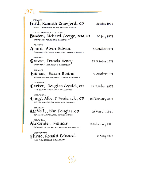 | 80002818 | Buxton | Richard George | July 30, 1971 | Chief Warrant Officer | Canadian Airborne Regiment |