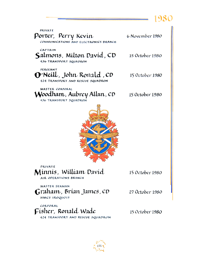 | 80002690 | Woodham | Aubrey Allan | October 15, 1980 | 436 Transport Squadron | |