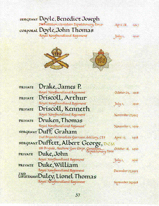 | 462635 | Duley | Lionel Thomas | September 29, 1918 | Royal Newfoundland Regiment |