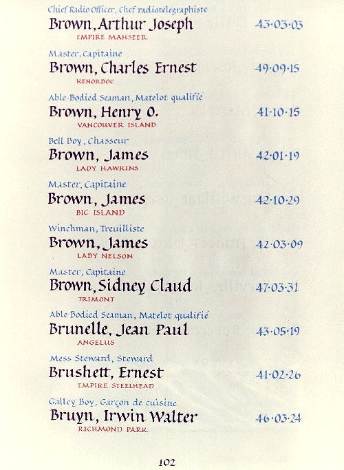 | 2557612 | Brown | Henry O. | October 15, 1941 | Able-Bodied Seaman | Vancouver Island |