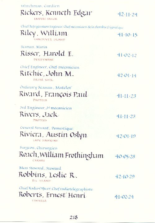 | 2640640 | Rickers | Kenneth Edgar | November 24, 1942 | Watchman | Empire Sailor |