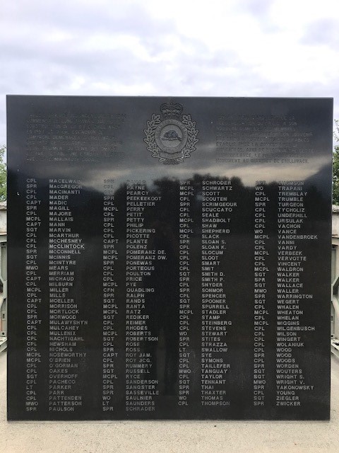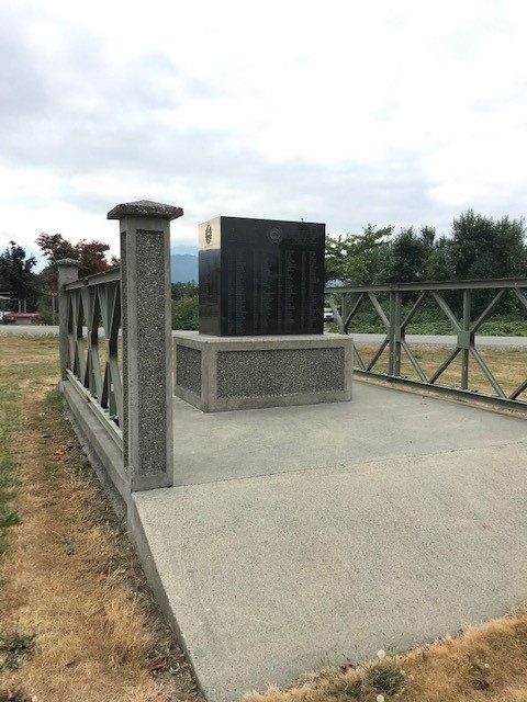 A polished black granite monument mounted on a base of a stylized section of Bailey Bridge was dedicated to the District of Chilliwack on 1 July 1996 in Sapper Park, formerly "Thunderbird Park", by the 1 Combat Engineer Regiment. The monument lists the unit leadership during the stationing of the unit and its predecessors in Vedder Crossing since 1953 and lists those who were in 1 Combat Engineer Regiment in July 1996 as the unit prepared to depart Vedder Crossing for Edmonton, Alberta.
