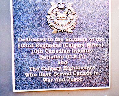 Dedicated to the soldiers of the 103rd Regiment (Calgary Rifles), 10th Canadian Infantry Battalion (Canadian Expeditionary Force) and The Calgary Highlanders who have served Canada in war and peace.