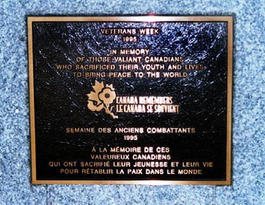Erected by the Royal Canadian Legion, this memorial commemorated Veterans' Week in 1995 by remembering all Canadians killed during war.