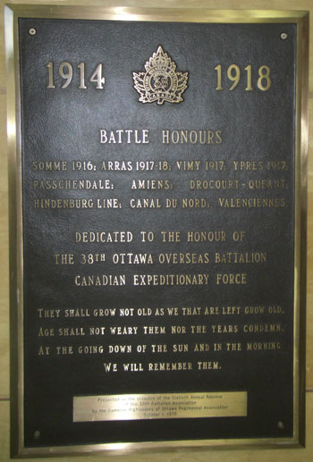38th Ottawa Overseas Battalion Plaque