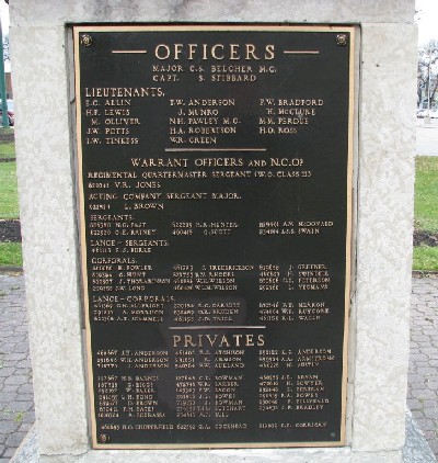THIS MONUMENT WAS ORIGINALLY A MEMORIAL TO THE 328 MEN OF THE 44TH BATTALION CANADIANS WHO FELL IN THE BATTLES AT VIMY RIDGE, THE TRIANGLE AND LA COULOTTE IN 1917. IT IS REVERENTLY REDEDICATED TO THOSE MEN, TO THE 44TH MEN WHO FELL ON OTHER FIELDS OF BATTLE IN WORLD WAR I, AND TO THOSE WHO HAVE SINCE PASSED ON.