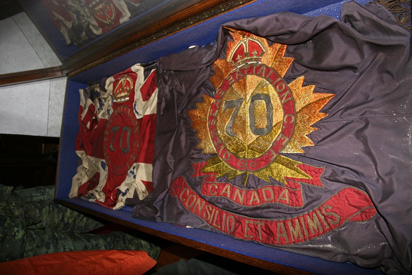 70th Battalion CEF deposited their Colours in Cronyn Memorial Church on February 12, 1922. In earlier times, Colours played a prominent part in many battles. They served to identify units in battle, often marking the focal point of a struggle. Captured Colours were a prized trophy and attracted enemy attention and inspired much gallantry. By the late 19th and 20th Century, however, they were no longer carried in battle, but their status as the heart and soul of a Regiment continued, and the laying up of Colours signifies and helps keep holy the memories of the men who sacrificed their lives.