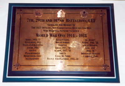 7th, 29th and 102nd Battalions First World War Memorial Plaque