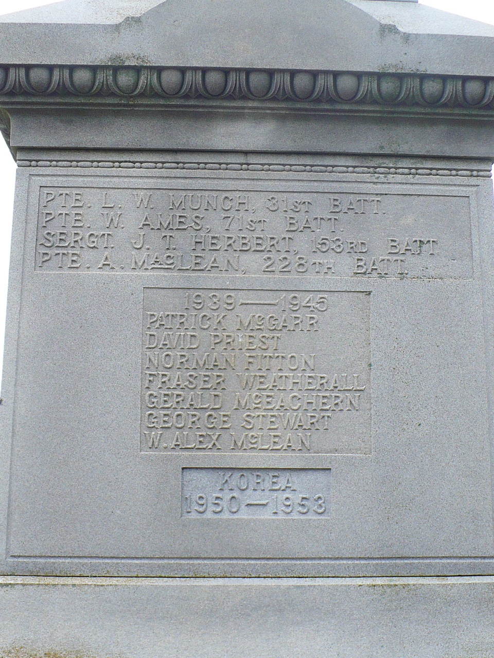 Later, inscriptions were added to honour the Second World War and on June 3, 1949, a memorial service was held at the memorial. After the Korean War, an inscription was added for that conflict.