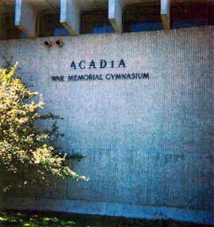 Acadia War Memorial Gymnasium was dedicated to graduates and ex-students of Acadia University and affiliated schools who gave their lives in the First World War. It was designed by Halifax based architect Sydney P. Dumaresq, Acadia University Class of 1899. The building, of local quartzite with Indiana limestone trim, was built by Charles H. Wright during 1920 to 1921 at the cost of approximately $100,000.