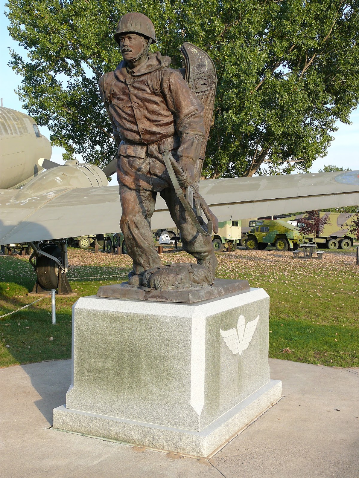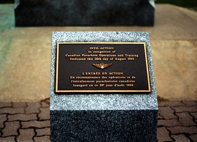 The Airborne Forces monument was dedicated on August 28, 1988. It was constructed in memory of the Canadian Airborne Forces, including the 1st Canadian Parachute Battalion, the Canada/USA Special Service Force, and Defence of Canada Parachute Units. The Canadian Airborne Regiment commissioned this monument to mark its 20th anniversary and to honour all past and present Canadian operational parachute units.