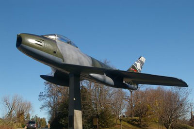 It was assembled near Montreal and first flew on May 6, 1954. Six days later, it was an operational fighter/trainer at CFB Clinton for Canadian pilots and ground crews to master radar. In April 1957, the aircraft was stationed to CFB Chatham and used to train pilots in battle scenarios. By 1970, it was decommissioned and sold to a war surplus store near the Chatham base. Three members of the local Air Force Association 428 Wing, Alf Dawson, Gord Wilson and Vince Strano, purchased the aircraft for a memorial at a cost of $4,500.