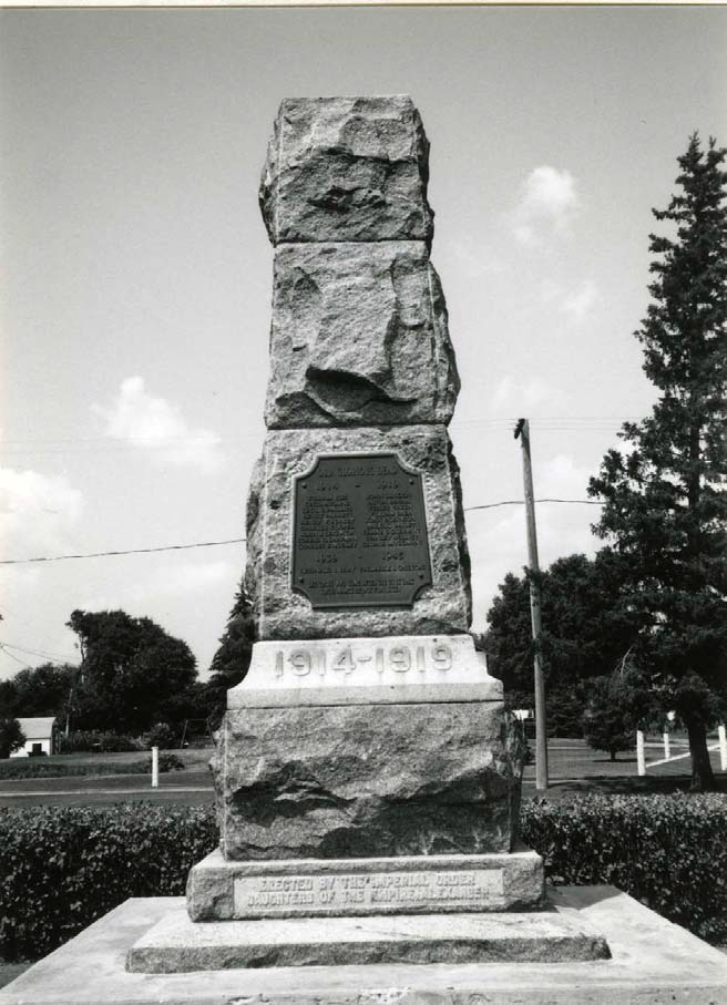 The Alexander War Memorial consists of four unpolished stones mounted on top of one another in a park, with flowers and trees and a brass plaque. The memorial was erected by the Alexander branch of the Imperial Order Daughters of the Empire in 1922. The memorial commemorates the fallen war heroes from the local area killed during military service of the First World War, and Second World War.