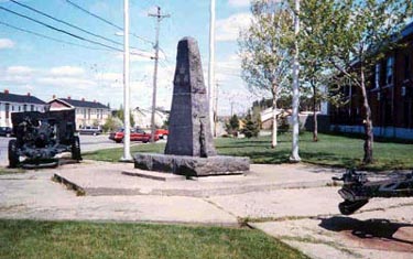 This stele, surrounded by two field guns, was erected by Royal Canadian Legion Branch No. 19, in honour of the veterans of the First and Second World Wars and the Korean War.