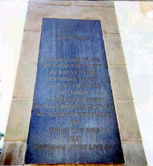 IN MEMORIAM AGAINST THE YEARS WE RAISE THIS SHAFT OF NATIVE STONE ENDURING AS OUR EVERLASTING HILLS IT STANDS AS A PLEDGE TO SHOW WE HAVE NOT BROKEN FAITH WITH THOSE WHO FOUGHT AND THOSE WHO DIED THAT FREEDOM MIGHT LIVE ON