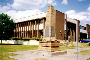 Constructed in Oct./Nov., 1937 in memory of the fallen First World War veterans. The First World War Cenotaph at Antigonish is located at the Federal Building Grounds, Main St. It was previously located at the intersection of St. Ninian St. and Main St., West end of town. It was built on the above location in October/November of 1937 and was unveiled on November 11, 1937. The material used in its construction was a North Granite (Antigonish County) sandstone. It is a plain obelisk, 17 feet high, tapering to a pointed cap, designed and completed by F.W. Arsenault. The concrete base was put in and donated by the MacDonald Construction Company, Halifax, N.S. On three sides of the monument are black granite slabs on which the names of the dead were carved by W.T. Dalton, Shelburne. On the North side is an inscription composed by Miss K.M. MacDonald, teacher in England at Morrison High School (1937). The people of Antigonish and surrounding areas donated funds toward the building of the Cenotaph in the town of Antigonish. There is even reference to a committee of Canadian ex-servicemen in greater Boston (as a local paper reads) staging a social evening in Brighton, the proceeds to go to the fund being raised to pay for the war memorial begin erected in Antigonish. "This will give an opportunity for natives of Antigonish Town and County in Metropolitan Boston to help provide a monument to those who lost their lives in the Great War."