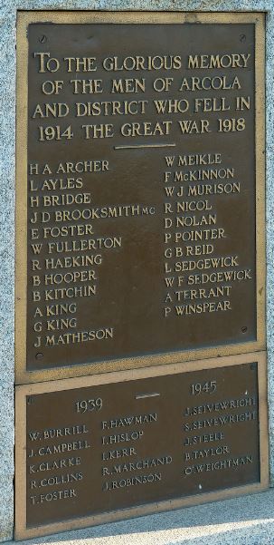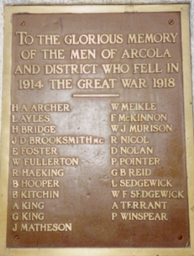 TO THE GLORIOUS MEMORY OF THE MEN OF ARCOLA AND DISTRICT WHO FELL IN THE GREAT WAR