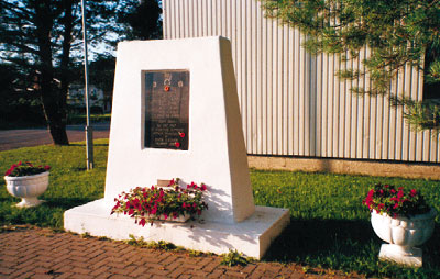 This memorial is dedicated to Arthur Francoeur, Simon Sleigher and Valmont Lebel. A dedication ceremony was held on May 31, 1986. The evening ended with a buffet and reception. The monument was restored by the Town of Nouvelle in 1994.