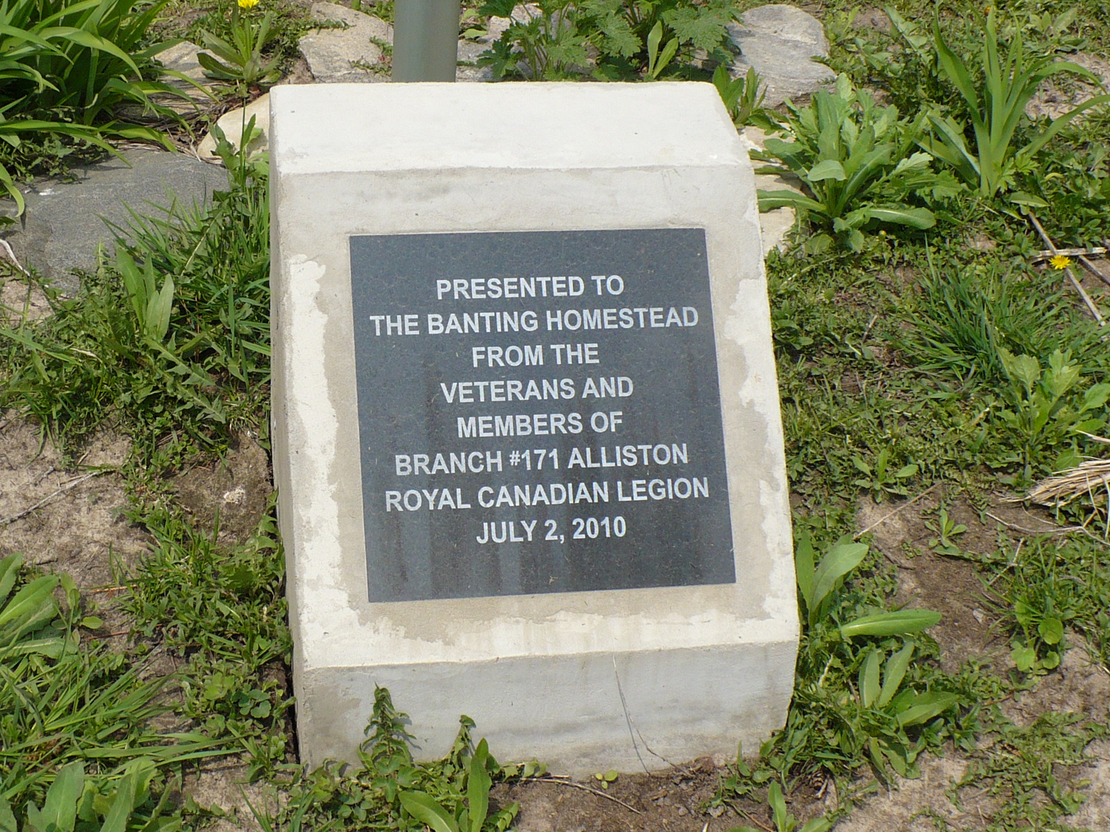 In 1975, a cairn was erected on the Banting property to mark the birthplace of Sir Frederick Grant Banting. In 2008, the Town of New Tecumseth purchased the property and named it the Banting Heritage Park. The farmhouse officially opened to the public at the annual Banting Day/World Diabetes Day celebration held on November 10, 2012. A new Heritage Exhibit building was completed and officially opened on Banting Day, November 9, 2013. The park includes interior exhibits and a Banting Legacy exercise trail.