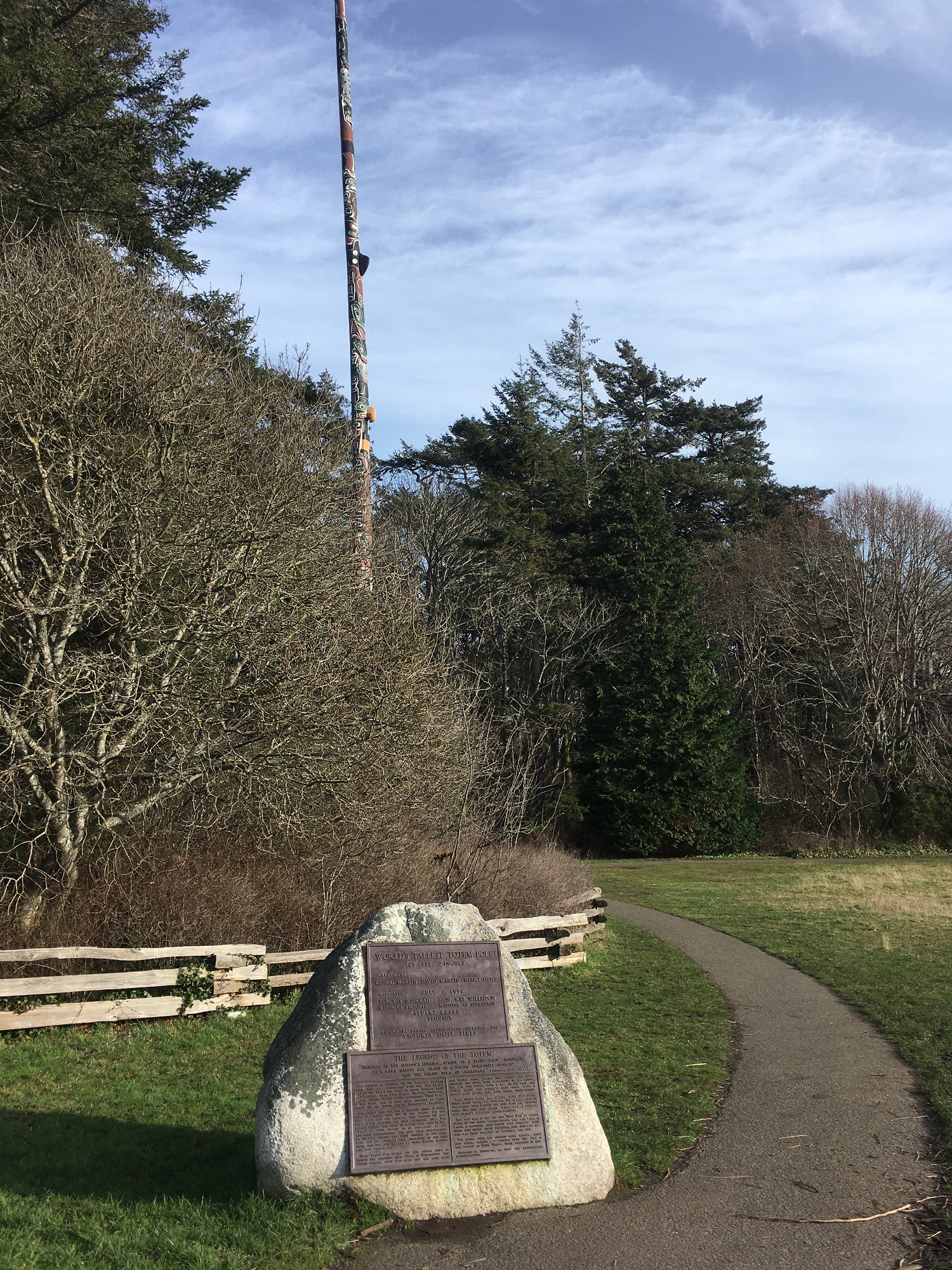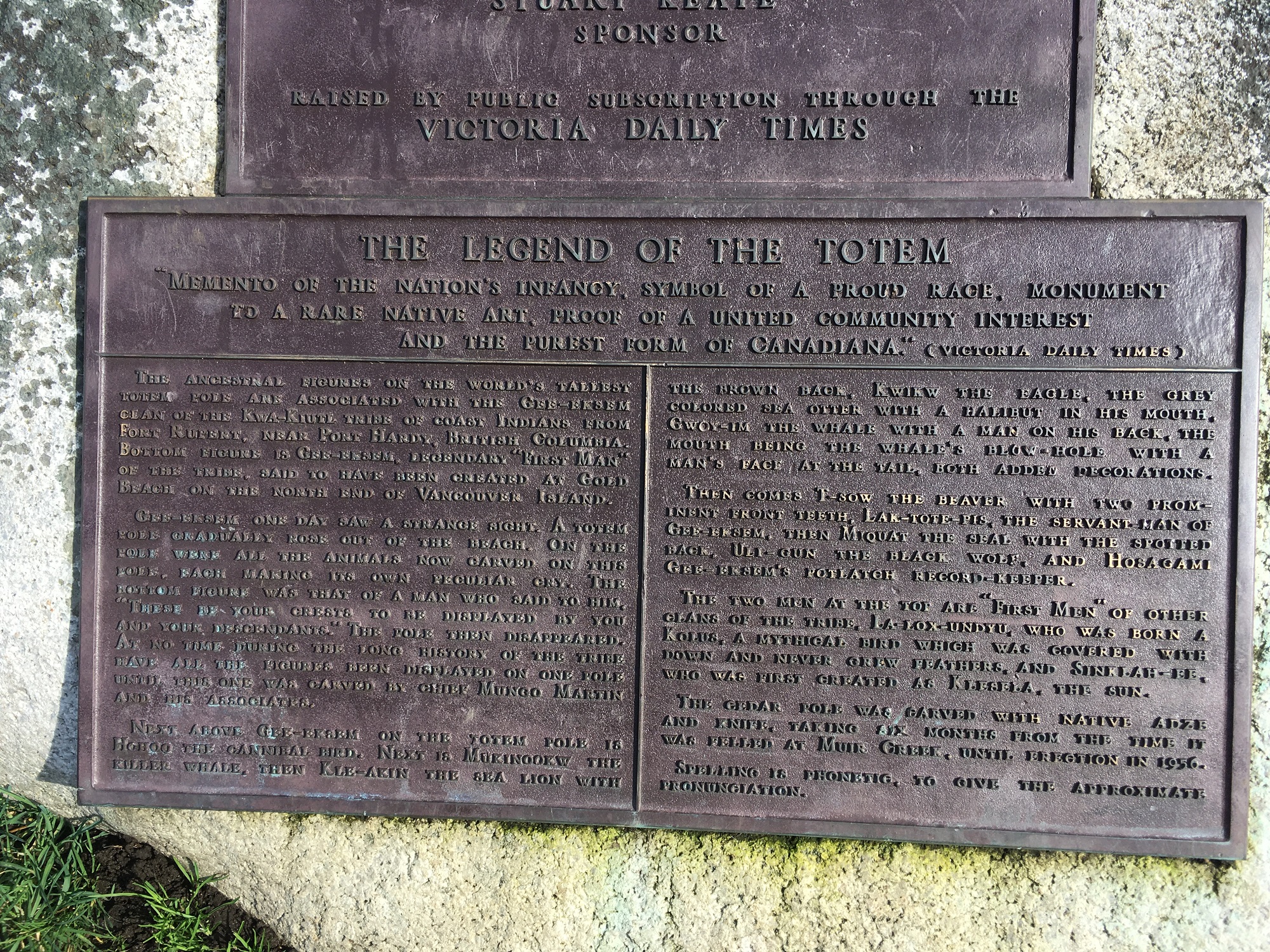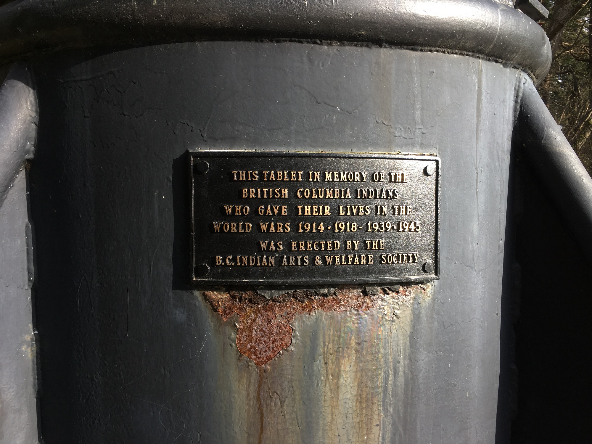 Beacon Hill is rich in First Nations history. For thousands of years, this area was significant for the Lekwungen people, now known as the Esquimalt Nation and Songhees Nation. A tablet was placed on the Story Pole base in memory of the British Columbia Indigenous who gave their lives in the First and Second World Wars.