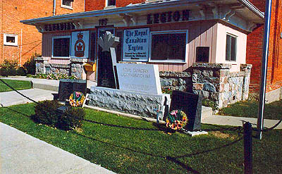 This memorial, erected by Royal Canadian Legion Branch No. 185, is dedicated to local First and Second World War veterans.