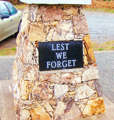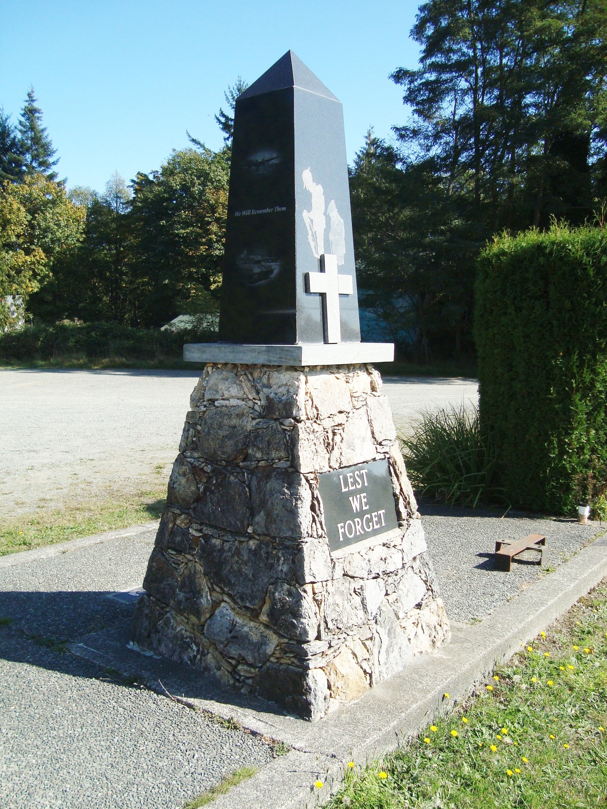 This memorial, erected by Royal Canadian Legion branch No. 211, is dedicated to the memory of the First and Second World Wars and the Korean War. The memorial was built in 1980 by Jim Simms and Rodger Strugnel.