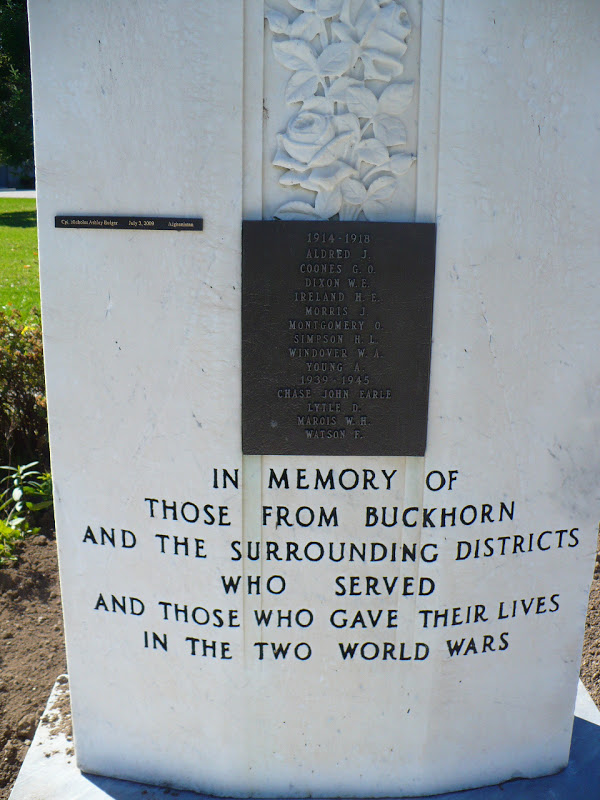 The Buckhorn Cenotaph was constructed in 1945-46 in memory of those who gave their lives in the two World Wars and was erected in 1946 by the local Women's Institute.
