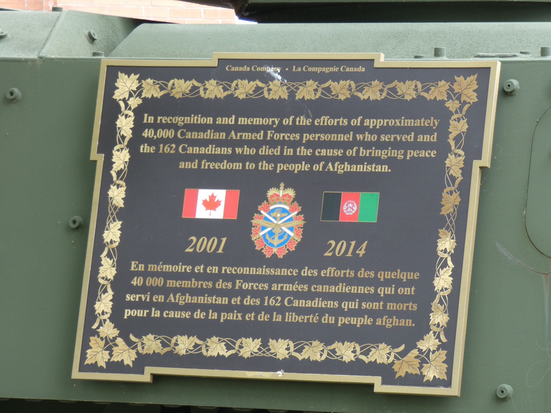 On November 5, 2014, the Canada Company Light Armoured Vehicle (LAV) lll Monument Program was launched to recognize the 40,000 Canadians Armed Forces who served in Afghanistan and to commemorate the 162 Canadians who lost their lives. The program closed after awarding 33 monuments to communities across Canada.