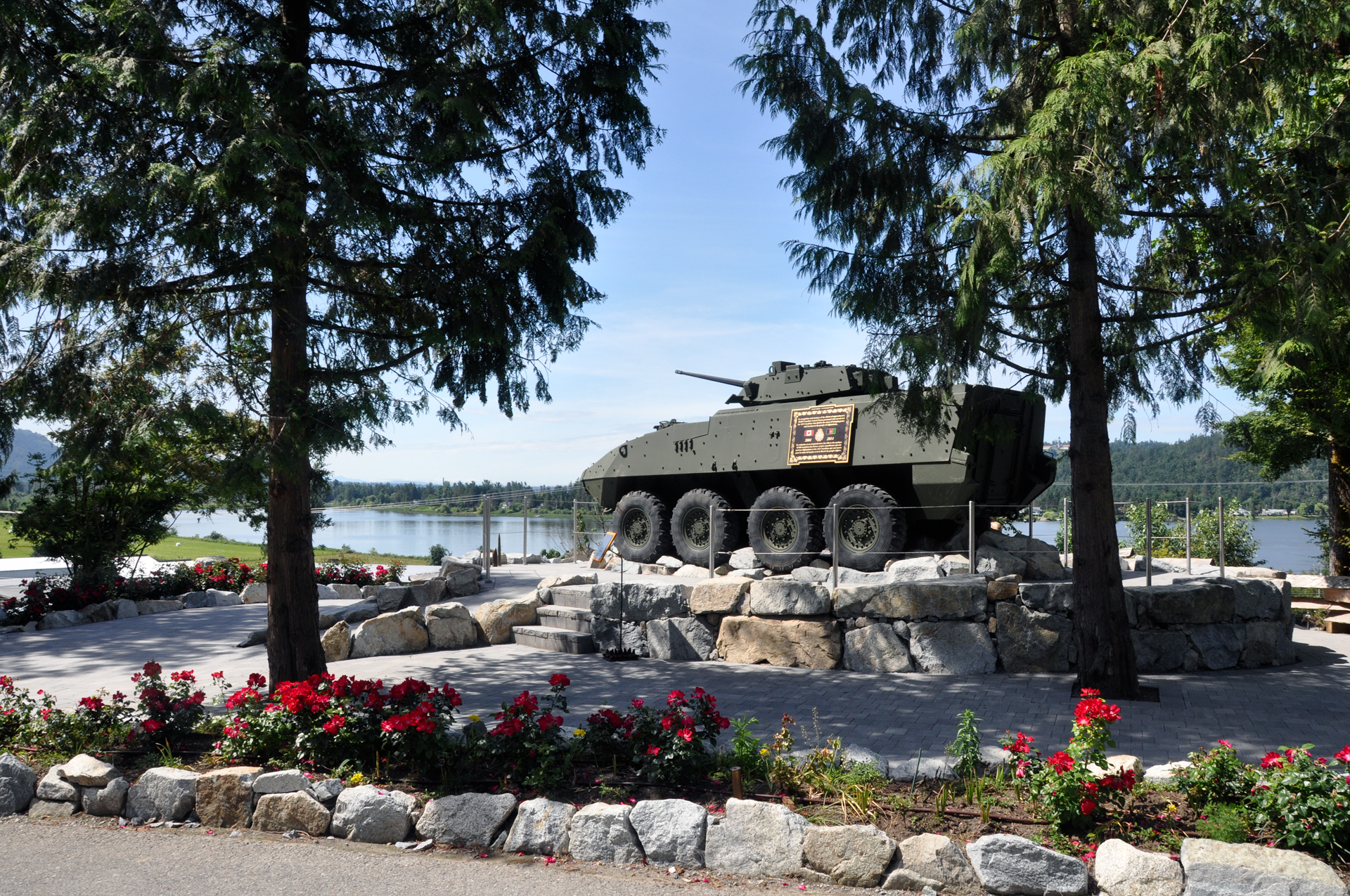 The BC Regiment Armoury is a designated heritage building located in downtown Vancouver with limited exterior property. As a result, the Armoury could not accommodate the display of the LAV III Monument outside, therefore, a former serving member of the Regiment, William P.J. McCarthy, donated a parcel of his family estate to ensure that his former Regiment could be commemorated in this symbolic way. The LAV III Monument is located close to Mission, overlooking Hatzic Lake and is visible when you drive along Sylvester Road. The Estate is called Shiloh Hill (or Place of Peace Hill) and the grounds will be opened to the public on various occasions throughout the year.