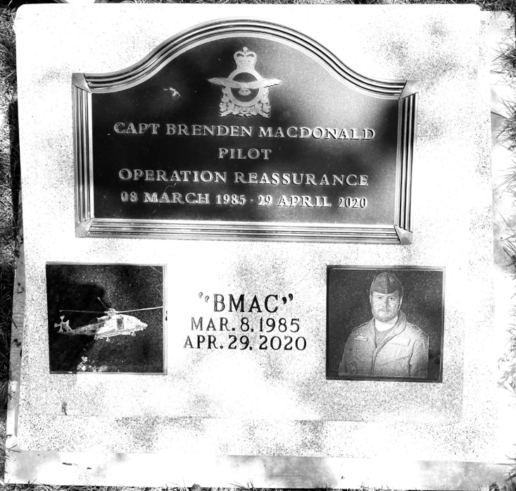 The Captain Brenden MacDonald Memorial was unveiled on 16 July 2022 and includes a plaque, a photo of MacDonald and a photo of the CH148 helicopter. A Cyclone helicopter did a low speed pass over the field during the ceremony.